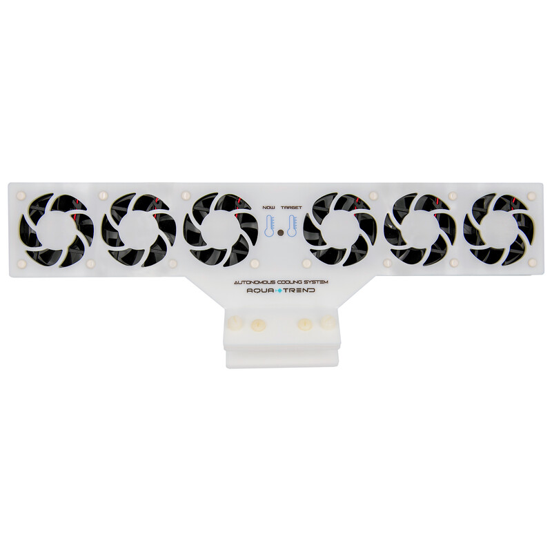 Das AUTONOME KÜHLSYSTEM ermöglicht die Einstellung der Lüftergeschwindigkeit (Luftstromleistung). Der Benutzer kann die Lüfterleistung an seine eigenen Vorlieben anpassen: Aquariengröße, Geschwindigkeit der Wasserüberhitzung usw. Die Einstellung erfolgt über einen Drehknopf am Gehäuse des im Set enthaltenen Netzteils.